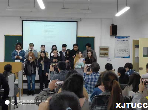 首先,各班为留学生们带来了精彩的才艺表演:日语191班学生代表演唱《梦灯笼》,特邀嘉宾英语171班的顾佳同学演唱《君が好きだと叫びたい》(灌篮高手主题曲),日语181班的陈羽欣同学演唱《打上花火》,日语171班全班合唱《lemon》),歌曲赢得日本留学生们的阵阵掌声。接下来,由中日双方学生共同参与的“你画我猜”互动节目将现场气氛带向高潮。互动结束后双方互赠礼物。在随后的互动环节,中日学生就日语学习方法、中日大学生生活、近年中日流行语、中日文化差异及时下热点等问题进行了面对面交流。中午,我院日语专业学生邀请留学生在学院中快餐厅共进午餐,品尝陕西特色美食,然后带领他们参观校园。下午,我院学生代表陪同日方留学生游览了汉城湖,参观了“张骞出使西域塑像”等著名景点,并一同合影留念。