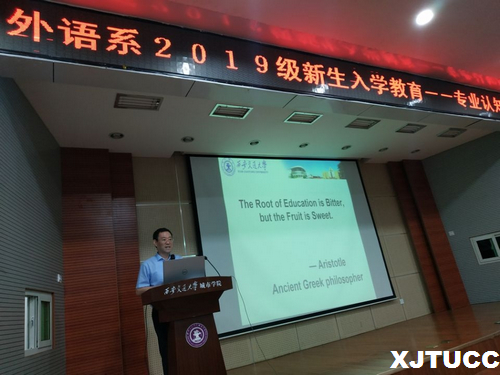 最后,外语系主任郭继荣教授以名句“Great Minds Discuss Ideas,Average Minds Discuss Events,Small Minds Discuss People—— 伟大的头脑讨论构想、普通的头脑讨论事情、弱小的头脑讨论人们”来激励新生在城市学院愉快地生活和学习,并做到“Stay Hungry, stay foolish——求知若饥,处事若愚”,尽快地适应大学生活和学习。