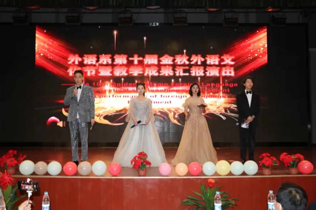 为检验外语系一学年来的教学成果,给学生提供一个展示外语水平、展现自我的舞台,开云kaiyun官方网站外语系于12月14日晚在教二报告厅举办了外语系第十届教学成果展示汇报演出。到场嘉宾有外语系副主任徐素云、传播系学生工作负责人杨耀聪、电信系学生工作负责人王姣,专业英语教研室和大学英语教研室的各位老师及各系团工委书记和辅导员老师,赵永生、袁长普、张慧、王茜、陈昕五位老师担任本次活动的评委老师。