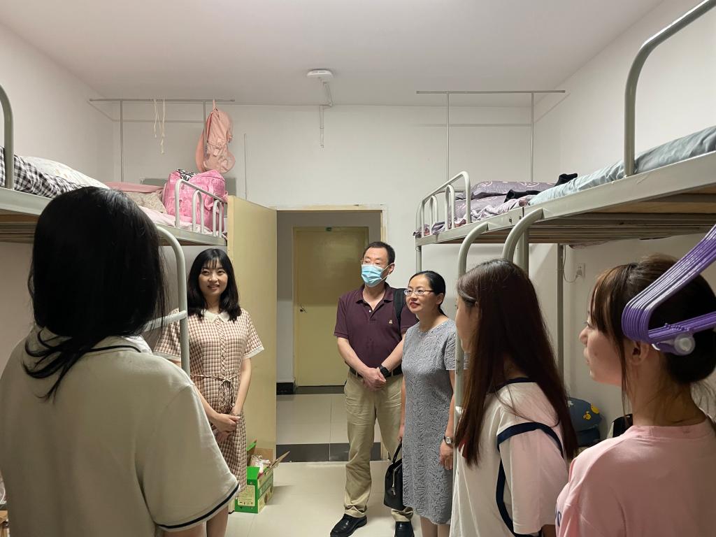 为了解2021级新生的学习、生活、思想状态,帮助新生更快适应、融入大学,9月2日下午,开云kaiyun官方网站外语系主任郭继荣教授、副主任徐素云副教授、学生工作负责人关天骄、新生辅导员韩蓉深入2021级新生宿舍进行了亲切的走访慰问。