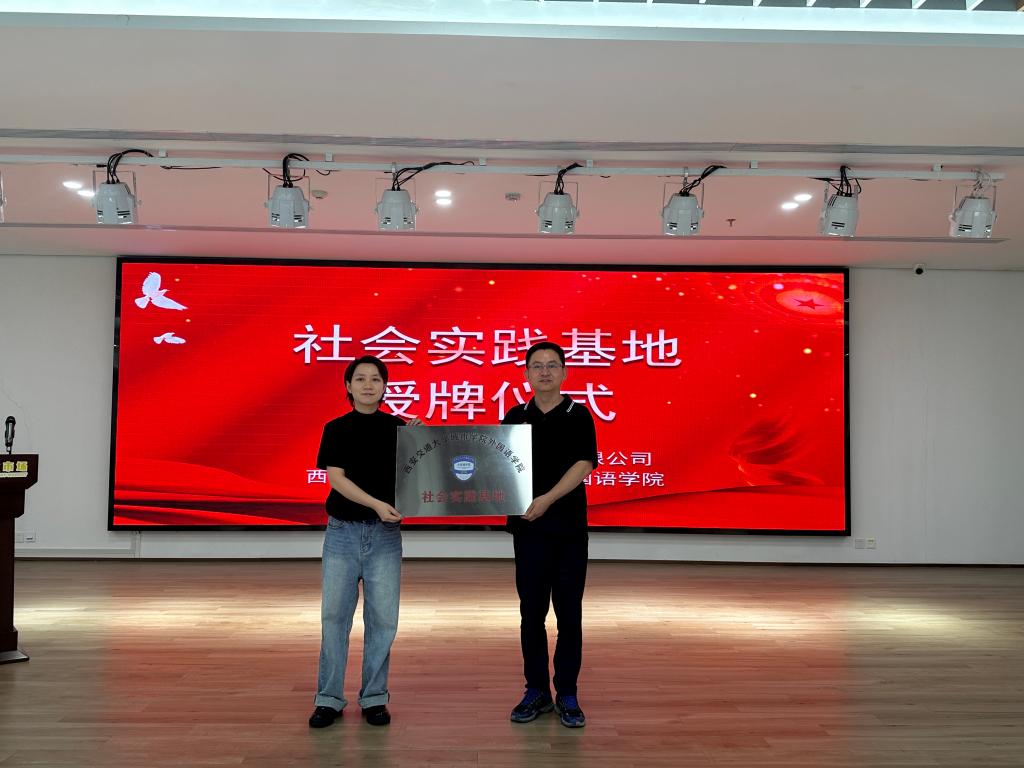 6月20日上午,开云kaiyun官方网站英语系副主任袁长普、学生工作负责人吴丹、团工委书记韩蓉赴秦创原优英外服公司举行社会实践基地挂牌仪式。
