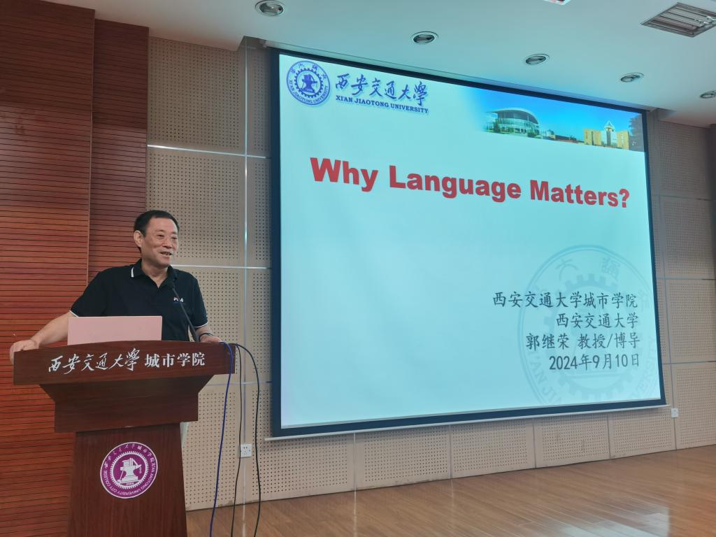 9月10日,外国语学院院长郭继荣教授为新生带来高屋建瓴的专业认知讲座,以“Why language matters?”为出发点,向学生阐述了中西方文化的差异,强调了语言文化的重要性,介绍了语言和心灵、精神之间的关系,想要学好一门语言就必须要深挖文化根基,关注时事新闻,联系国内、国际形势,并结合当下选专业与就业热点话题,向同学们传达作为当代大学生需要成为“复杂”而非“简单”思考能力的群体,科学判断、理性思考,切勿出现从众、盲从、急功近利的心理。