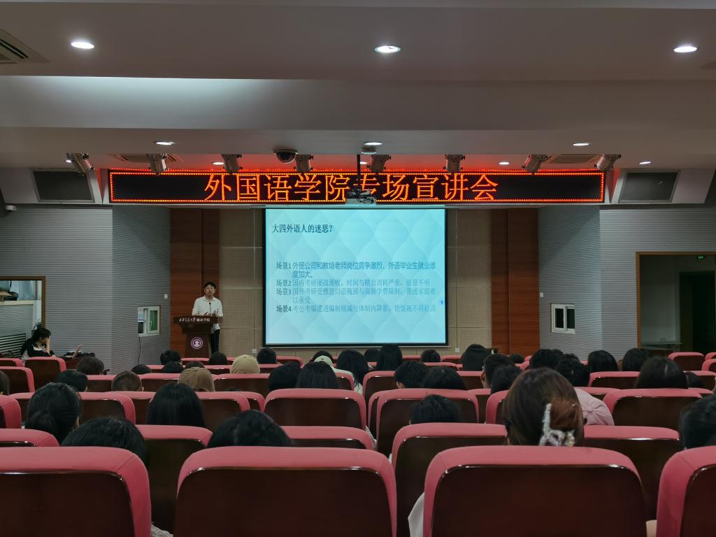 吴丹结合外语专业就业现状,分析了就业中存在的问题,鼓励所有同学做好职业规划,把握机会,迈出职业发展的第一步。