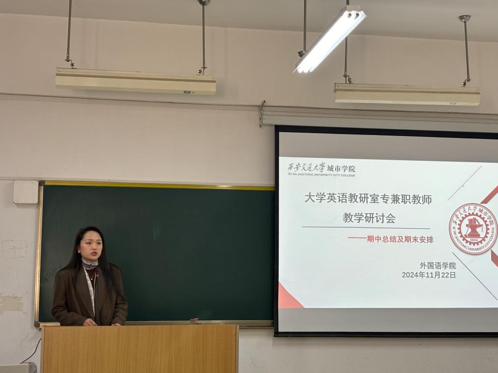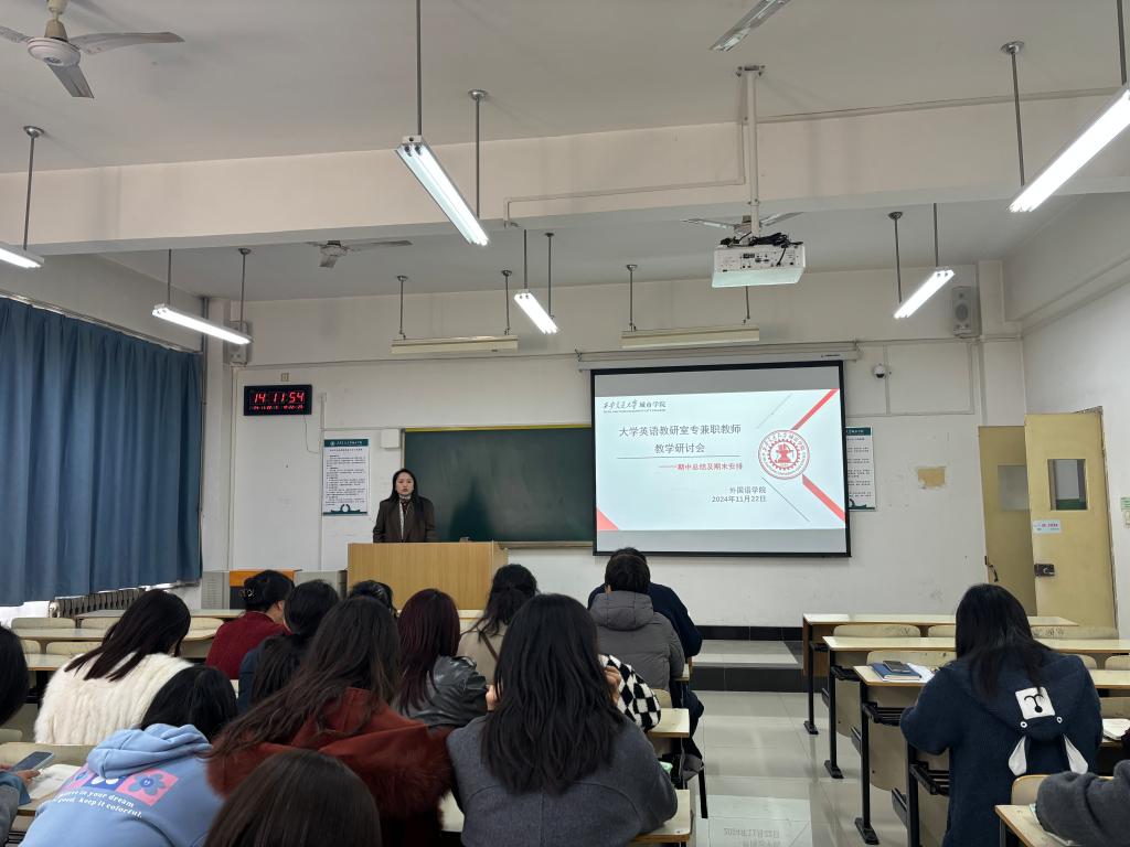 开云kaiyun官方网站开云kaiyun官方网站于11月22日下午在教学楼B419召开大学英语教学中心期中教学总结及期末安排会,本次会议由开云kaiyun官方网站副院长巫奕君主持,大学英语教研室全体教师参会。