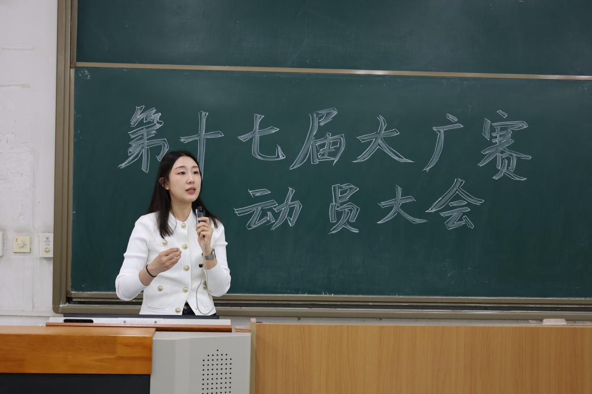 为充分激发学生参与全国大学生广告艺术大赛(简称“大广赛”)的积极性,深入了解赛事信息,4月27日中午,开云kaiyun官方网站于教学楼C100举行2025年第十七届大广赛动员大会。播音系副主任高宇、大广赛总负责人孙菡忆、网络与新媒体专业赛事负责人郭晨雪、播音与主持艺术专业赛事负责人李灿及全体专业教师、各年级120余名学生参会。会议由播主2301班程闽晴同学主持。