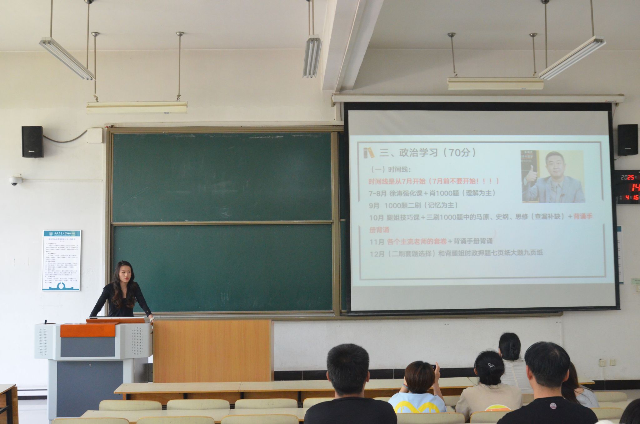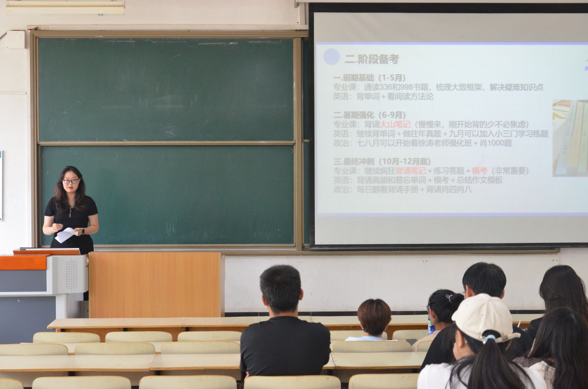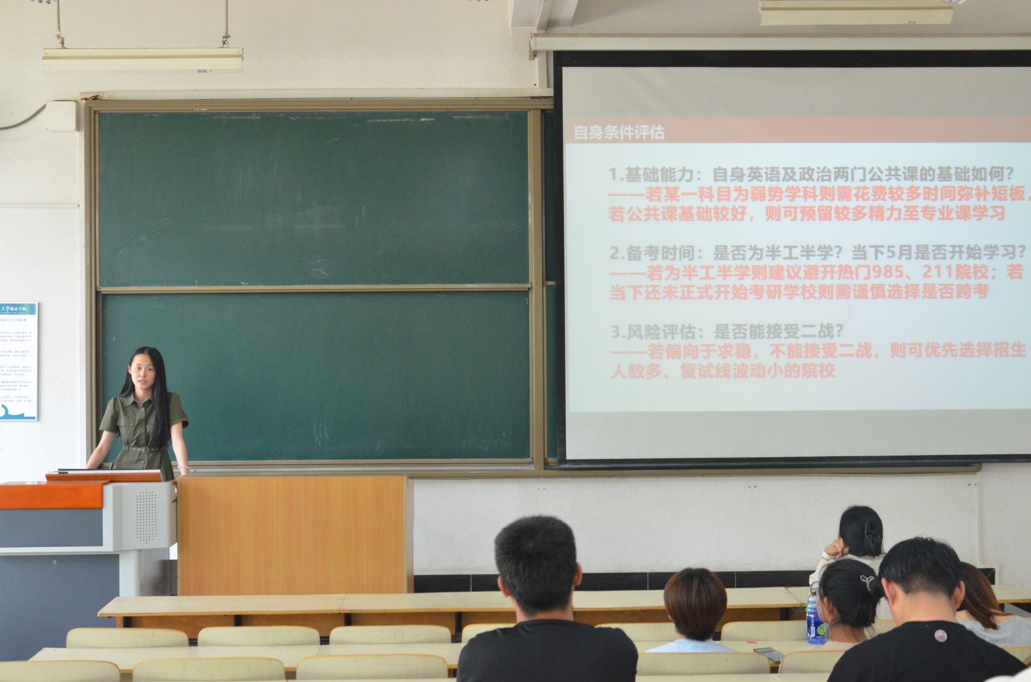 互动交流环节中,她们对参会同学提出的涉及考研过程中的心态调整、时间管理、跨专业考研难点等诸多方面进行了耐心细致地解答。最后辅导员任瑾老师总结发言,她对三位同学的精彩分享表示感谢,同时鼓励在场同学以优秀学长学姐为榜样,结合自身实际情况制定合理的备考计划。